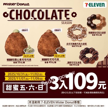 7-11門市Mister Donut 專櫃 限定優惠42元甜甜圈享3入只要109元