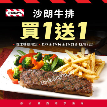 環球餐廳限定, 11/7、11/14、11/21、12/5 ,沙朗牛排 買一送一