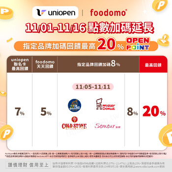💳 10/24 - 10/30 再搭配中國信託 uniopen 聯名卡