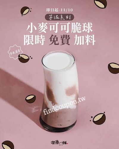 歡慶經典冬季系列 熱烈回歸✨ 🎁🎁🎁喫寶大放送!!!🎁🎁🎁 "芋泥系列" 小麥可可脆球 免費 加料😍 現省$10!活動只到11/10(一)! 冰冰喝 有嚼嚼ㄎㄠˊㄎㄠˊ感 熱熱喝 牛奶融入巧克力香、再加上麥片口感 嘗鮮首選,錯過這波真的會哭~😭