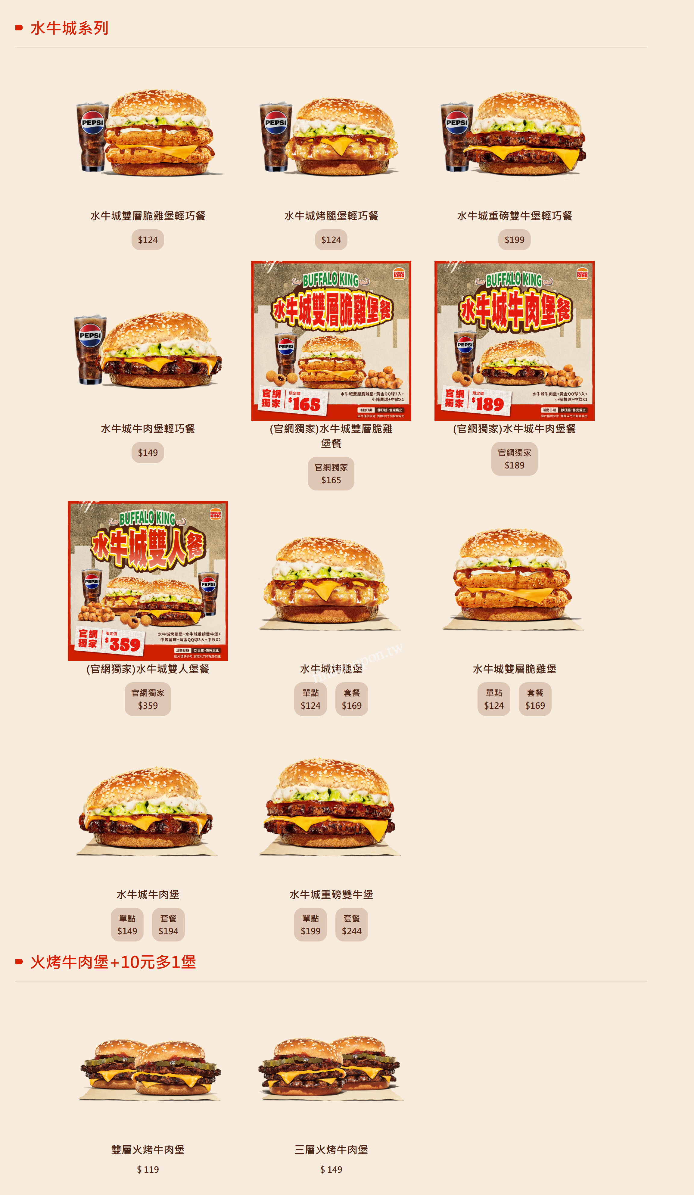 漢堡王 ~ 最新菜單 A.限時新品 20250414 更新 A.限時新品 B.牛肉漢堡 20250414 更新 B.牛肉漢堡 C.點心飲料 20250414 更新 C.點心飲料 D.雞肉/海鮮漢堡 20250414 更新 D.雞肉&海鮮漢堡 F.優惠卷 20250414 更新 F.優惠卷 PS. 漢堡王菜單 ~ 內容以各品牌門市現場為主,本頁面資訊僅供參考。 網友評論 其他菜單: 【麥當勞】2024年03月最新菜單 1年前 2024-03-10 【SUBWAY】最新菜單 3年前 【必勝客】2025年04月最新菜單 8個月前 2025-04-14 【達美樂】2025年04月最新菜單 8個月前 2025-04-14 【摩斯漢堡】2025年04月最新菜單 8個月前 2025-04-14 【頂呱呱】2025年04月最新菜單 8個月前 2025-04-14 【21世紀風味館】2025年04月最新菜單 8個月前 2025-04-14 【拿坡里披薩】2025年04月最新菜單 8個月前 2025-04-14 【肯德基】最新菜單 3年前 【胖老爹美式炸雞】2025年12月最新菜單 9個月前 2025-03-01