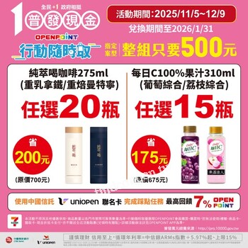 7-ELEVEN限時加碼優惠開跑,買1000元放大隨取卡 回饋120元