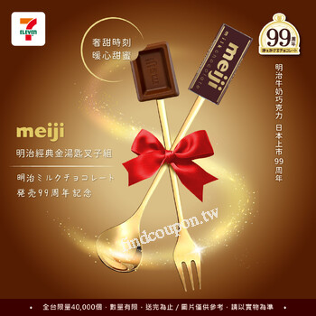 買明治指定品項任三件8折再加送『經典金湯匙與叉子組』乙組