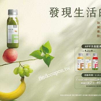 買純萃喝飲品任4瓶(售價$35/瓶)即可免費獲得限量摺疊購物袋乙個