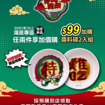 購買湯底專區指定商品任2件,即可99元加購「醬料碟2入組」