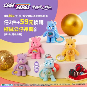 購買指定品項,+59元獲得植絨立體吊飾1個,+89元獲得飲料提袋1個
