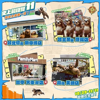 全家樹懶出沒活動,會員消費滿$111抽10萬旅遊金