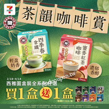 即日起至02/26(四) 西雅圖咖啡指定熱銷商品『買一送一』限時優惠