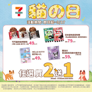 📌活動詳情請依7-ELEVEN官網公告為準。本活動不得與其他優惠併用,商品數量以各門市實際可販售數量為準。圖片僅供示意參考。詳細活動辦法依本公司公告為主。凡參與本活動,即視同承認及接受本活動注意事項及相關規定,本公司保有隨時修正、暫停或終止本活動之權利,若有未盡事宜,悉依本公司之相關公告辦理;本公司保留最終解釋及決定權利。 盒玩類商品皆採隨機配送,每店不保證有完整一套及各款之數量,購買前請謹慎決定。為確保公平性與消費者權益,購買前嚴禁有拆盒、秤重或各種探知內容物之行為,如經門市人員發現前述行為,均有權阻止。商品經拆盒或拆包後,一律不得要求退換貨(經判斷非人為商品瑕疵除外)商品到店日期會依各門市配送頻率、天氣、交通狀況而有差異,各門市商品到店後即會開賣,並依各門市實際可販售數量為準,若已售完敬請見諒。