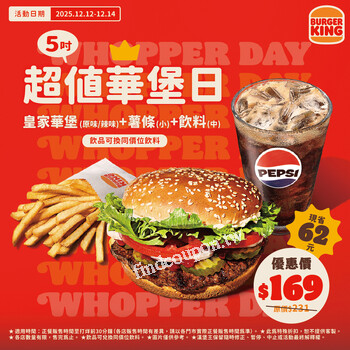 憑臨櫃買安格斯堡套餐或國王大雞堡套餐