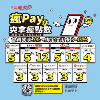 2025/7/1-2025/12/31,瘋Pay綁定指定信用卡最高可享15%回饋