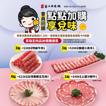 完成指定動作使用鼎王餐飲集團會員積點卡?點數指定肉品加購優惠