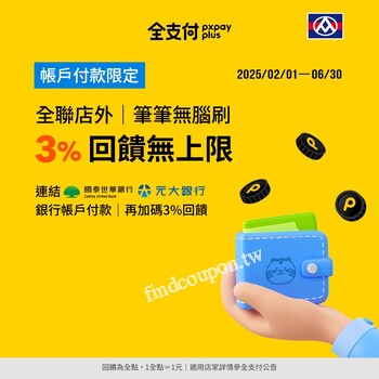 12/31前使用全支付,單筆消費滿 NT$1,000,即可享 50 全點回饋